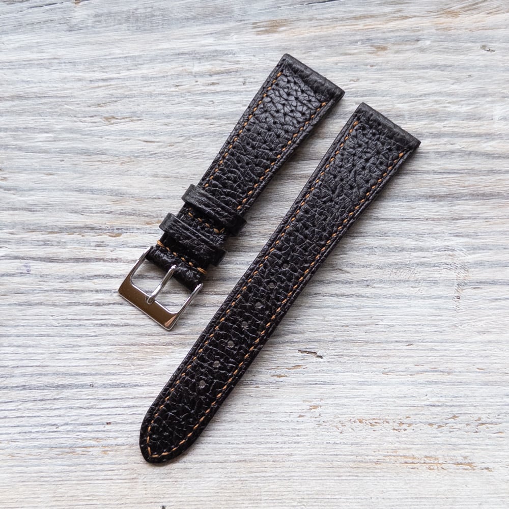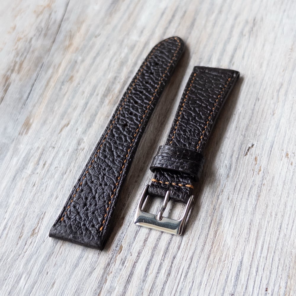 The upper leather is beautiful pigskin with its distinctive pattern. It has a lot of depth and a fantastic vintage feel!