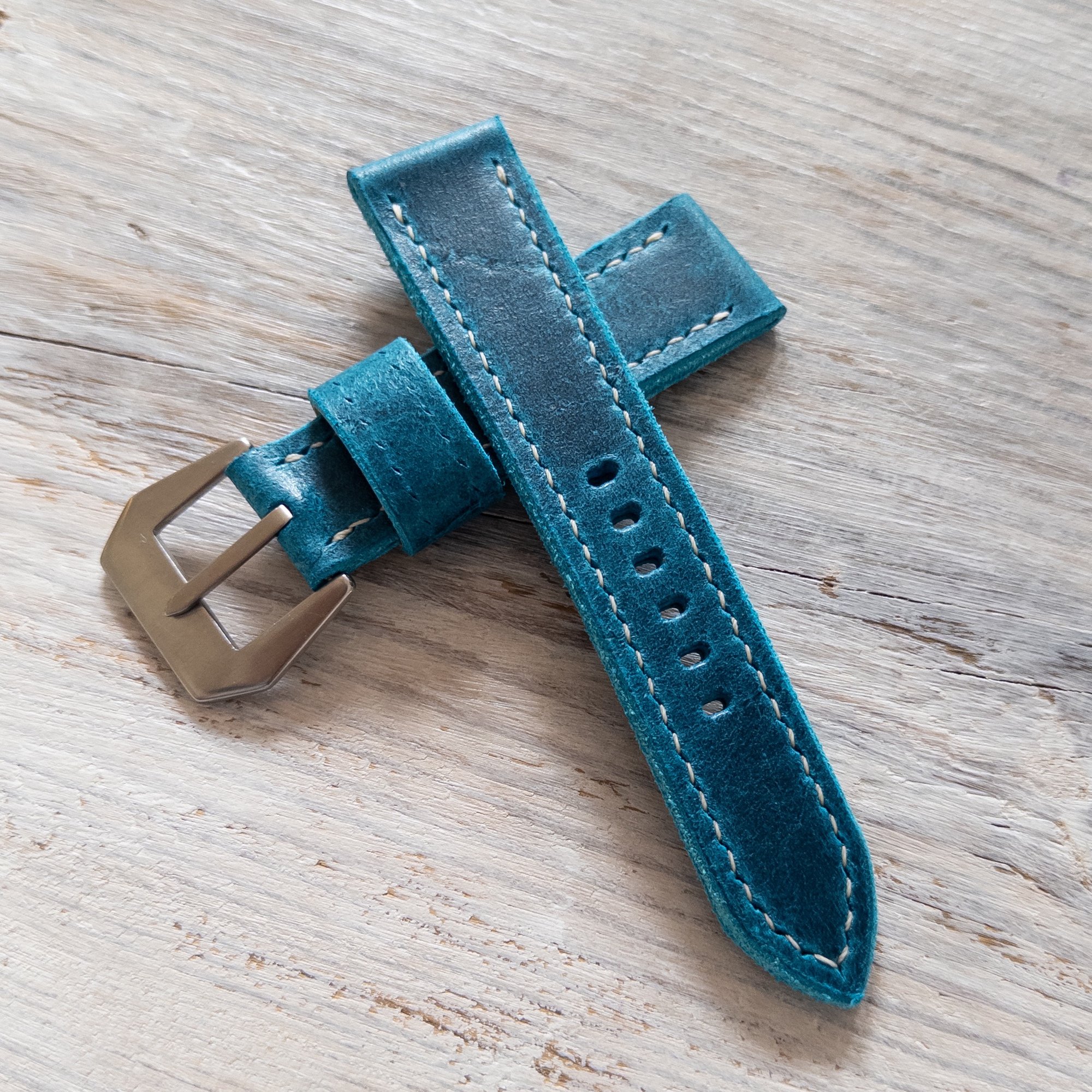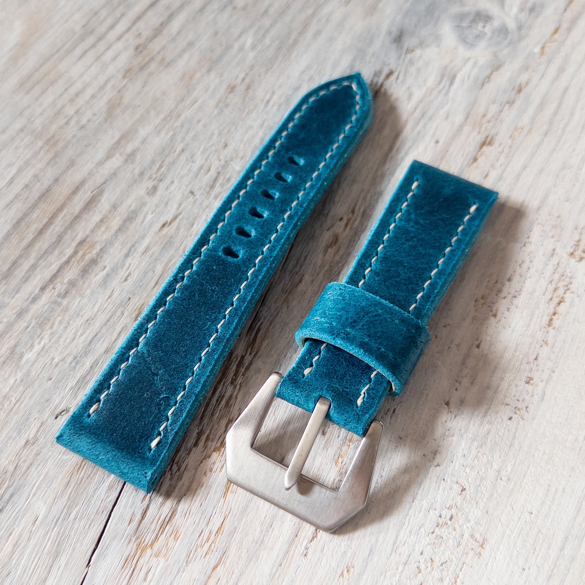 This strap is made from cowhide made by CF Stead in the UK. The leather has a very unique look and feel. Great for your rugged look.