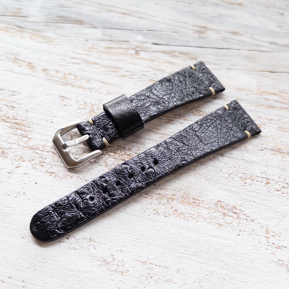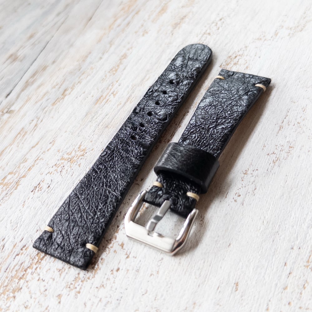 Made from the finest Ostrich leg leather with its very distinctive strap surface and exotic character. Underside of the strap will be Haas Zermatt with anti allergic properties.
