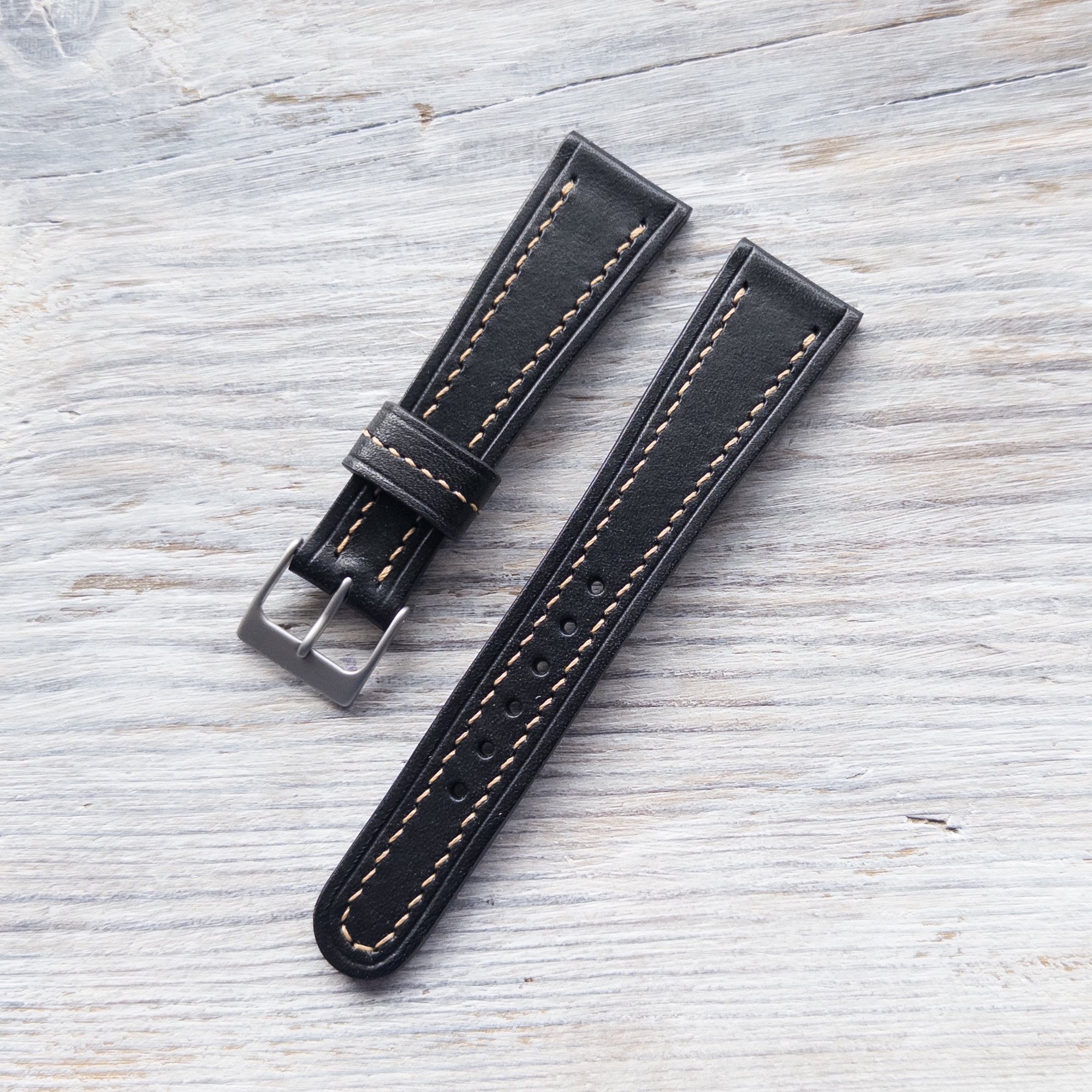 Lug and buckle sizing as well as length can be made on request. Just note your desired sizing (length + lug and buckle width) in the notes during checkout or just send me an email after you place the order.