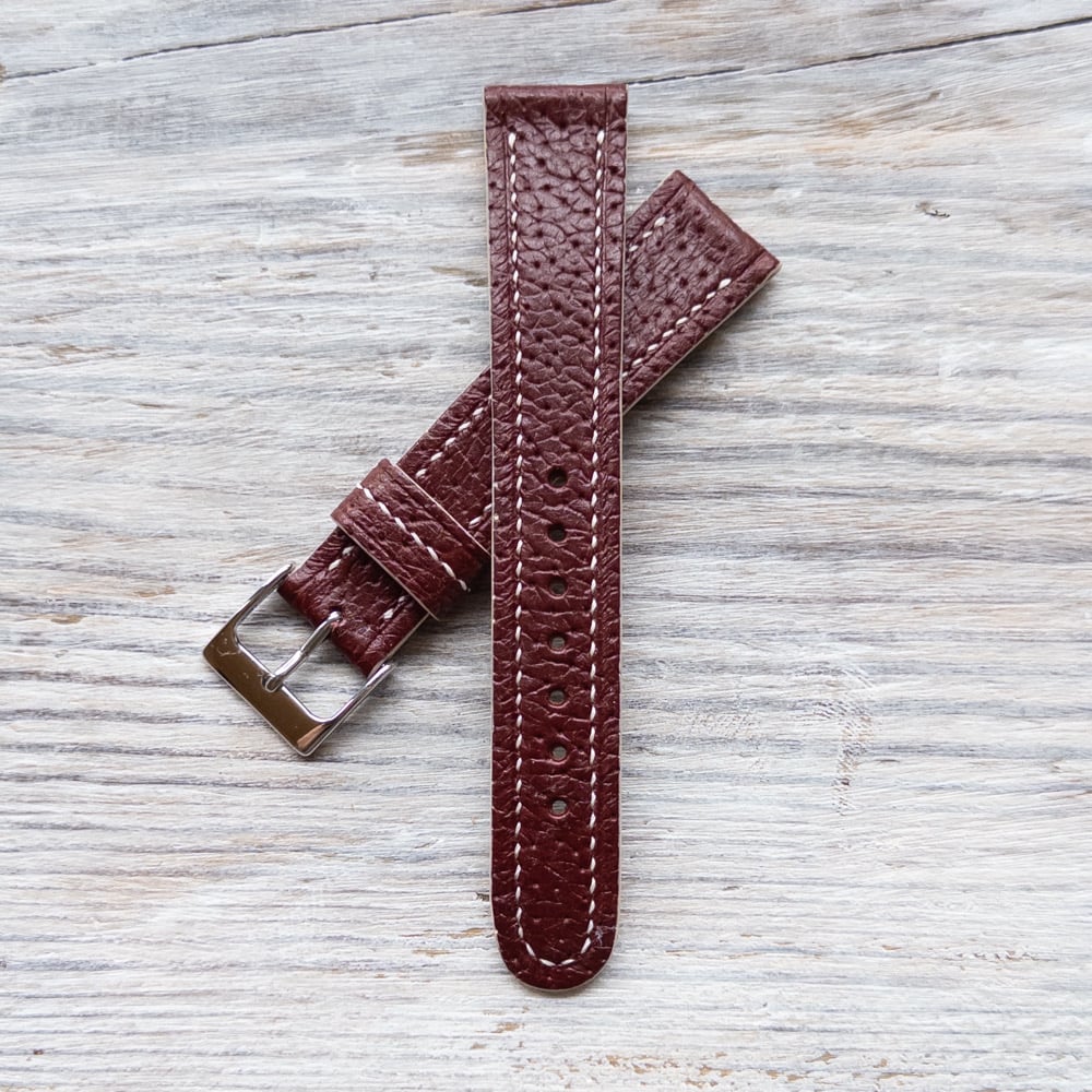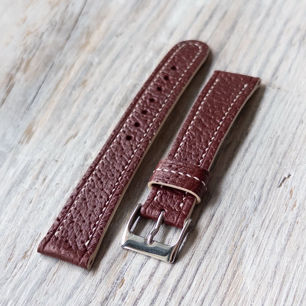 Hand assembled, stitched and painted edges this strap is now ready to add some unique character to your watch.