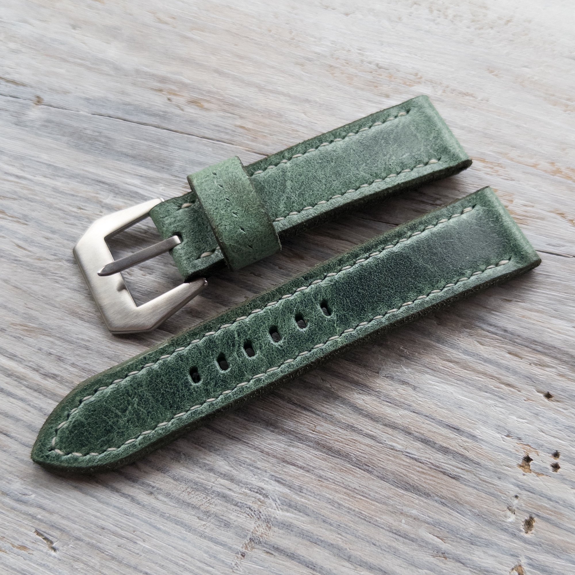 This strap is made from cowhide made by CF Stead in the UK. The leather has a very unique look and feel. Great for your rugged style.