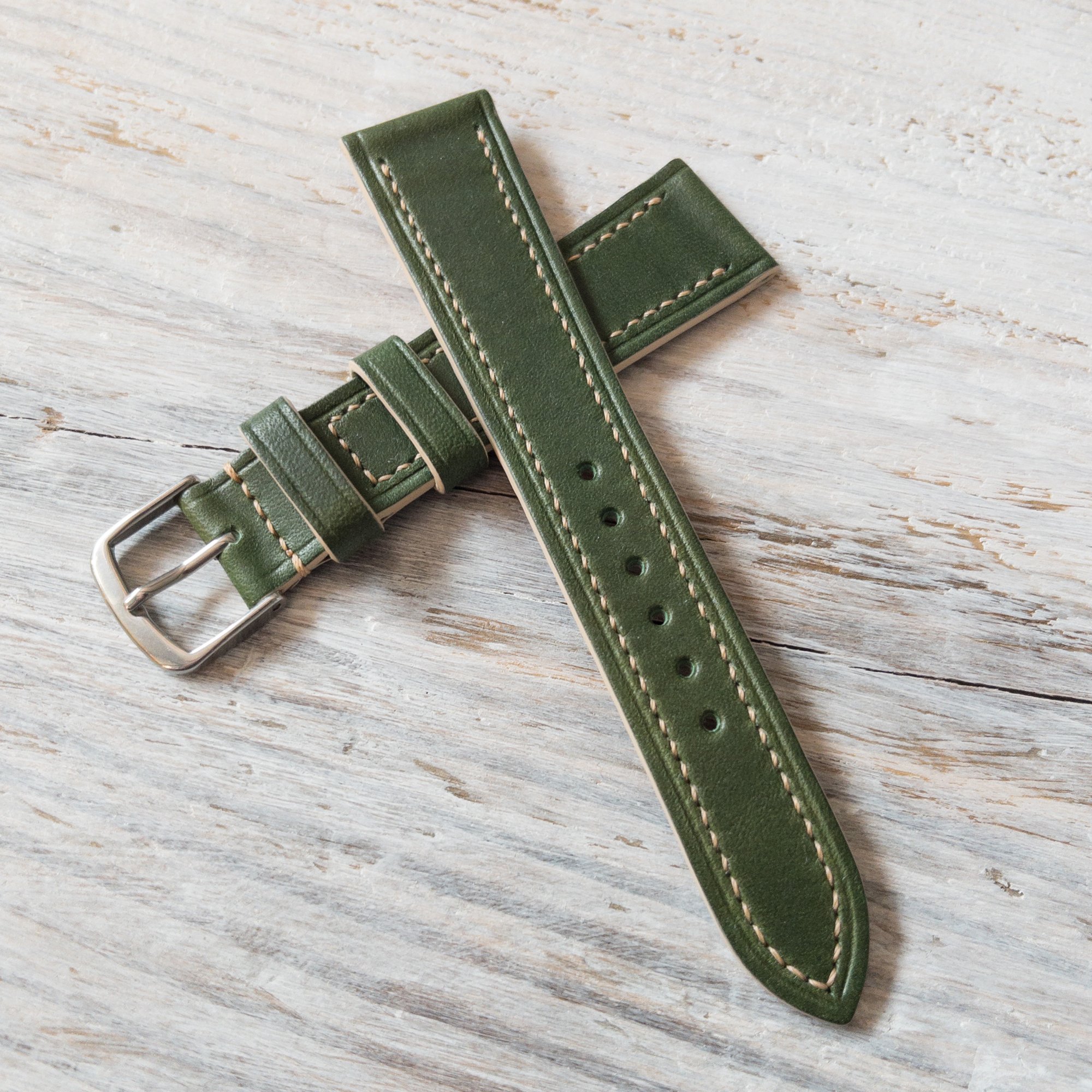 Hand assembled, stitched and painted and ready to add some unique character to your watch.