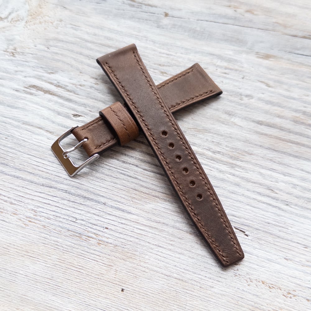 This strap is made from the finest Horween Derby leather. This vegetable tanned pull up leather from the famous Horween factory wears and ages really well.