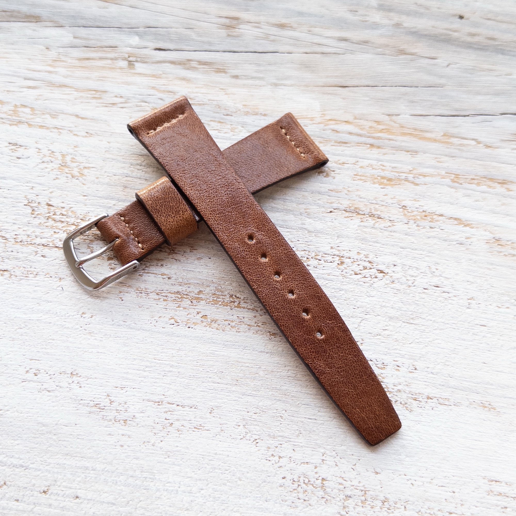 This strap is made from extremely fine and soft Italian calf produced in sunny Tuscany. The leather has a beautiful antique look typical for old leather furniture.