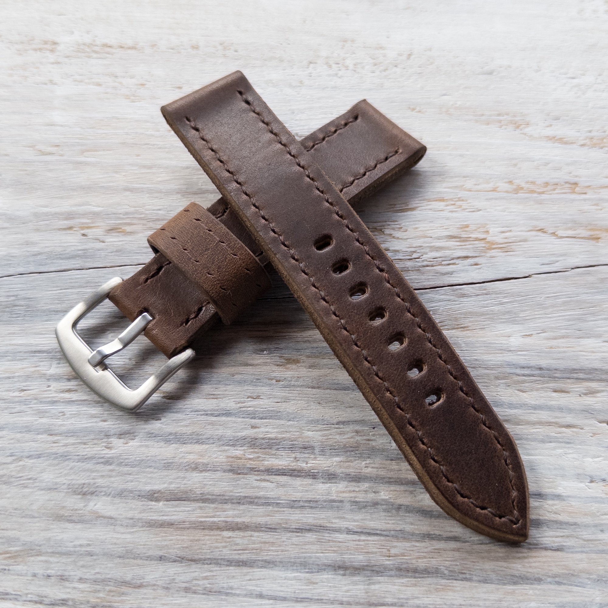 This strap is made from the fantastic Horween Derby leather. The leather has a very unique look and feel. Great for your rugged style.
