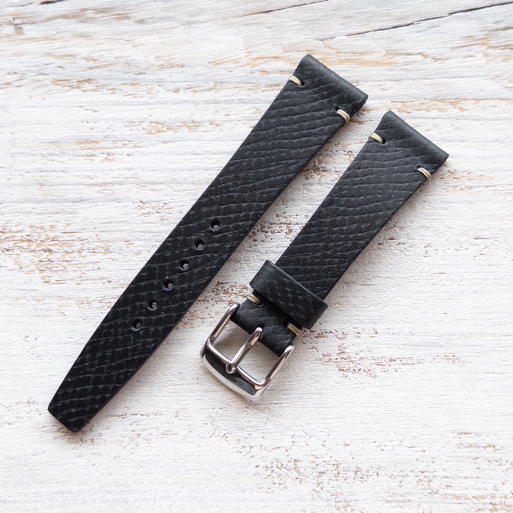 Lug and buckle sizing as well as length can be made on request. Just note your desired sizing (length + lug and buckle width) in the notes during checkout or just send me an email after you place the order.