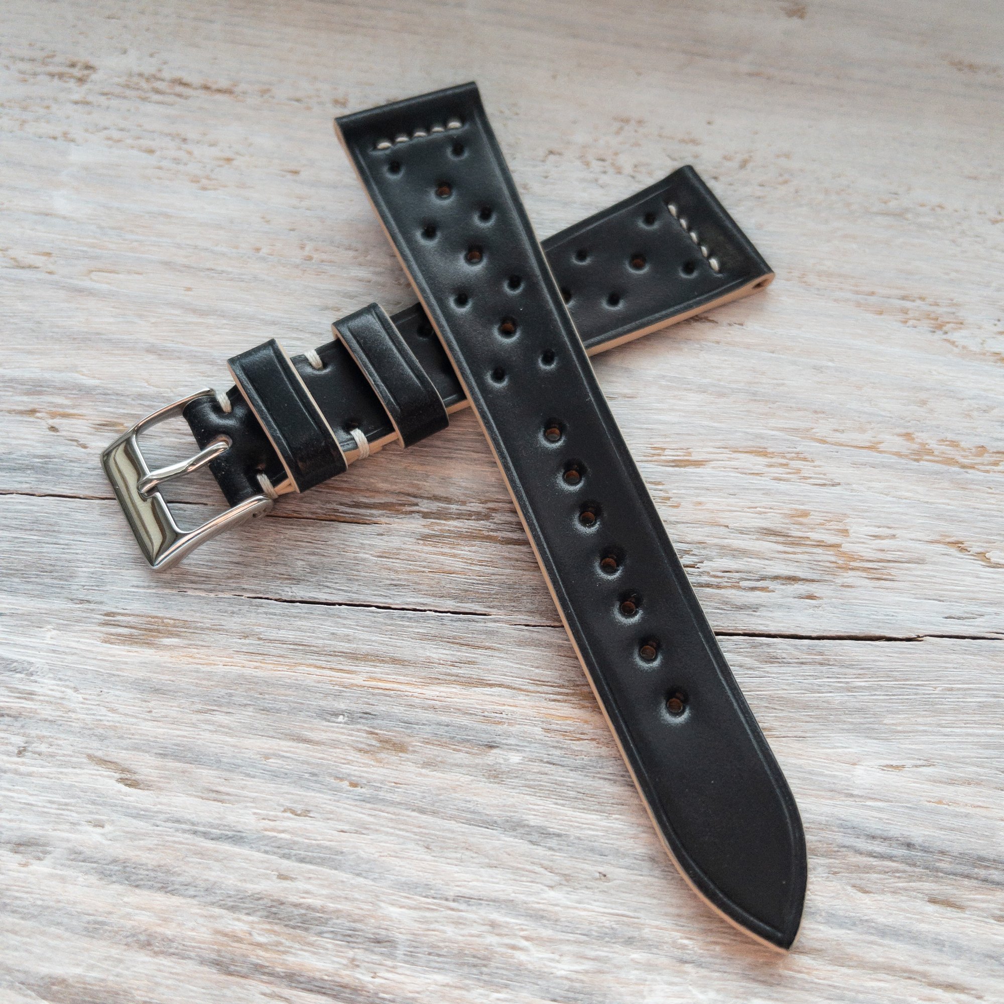 This listing is for a Horween Shell Cordovan 2 piece Rally watch strap with simple stitching.