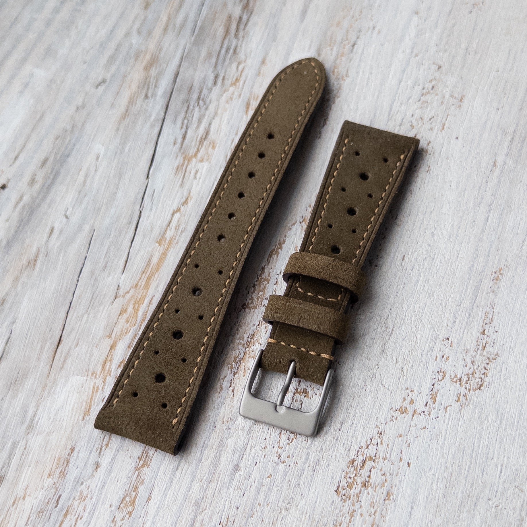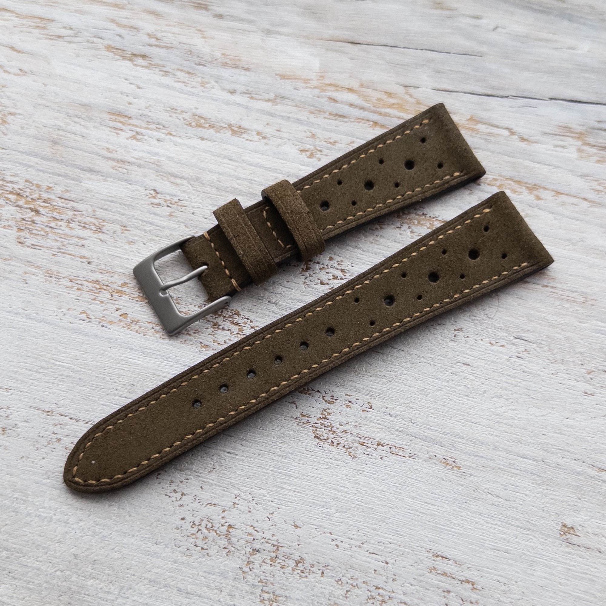 This listing is for an Italian Suede 2 piece watch strap with full stitching.