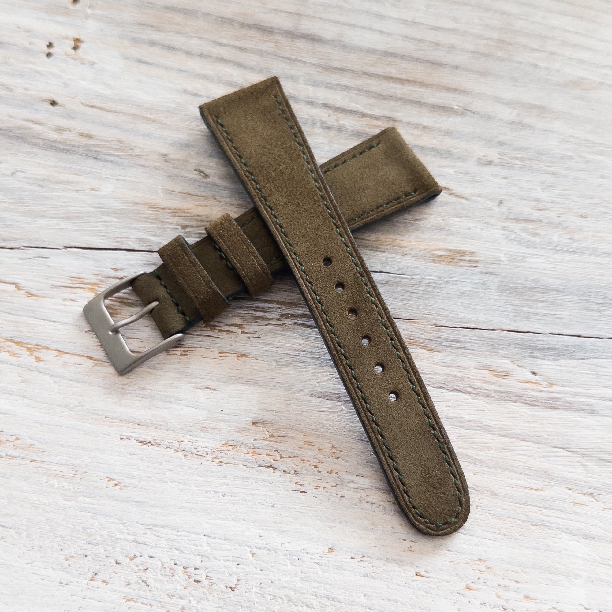 This listing is for an Italian Suede 2 piece watch strap with full stitching or optionally box stitching.