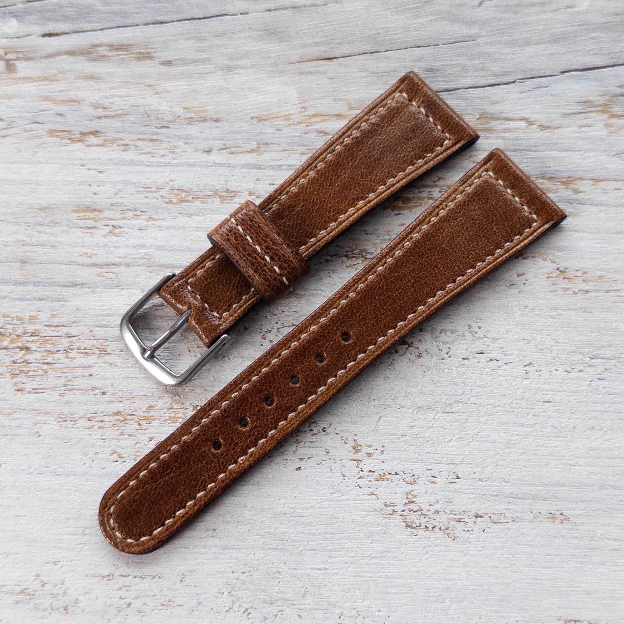 This strap is made from extremely fine and soft Italian calf produced in sunny Tuscany. The leather has a beautiful antique look typical for old leather furniture.